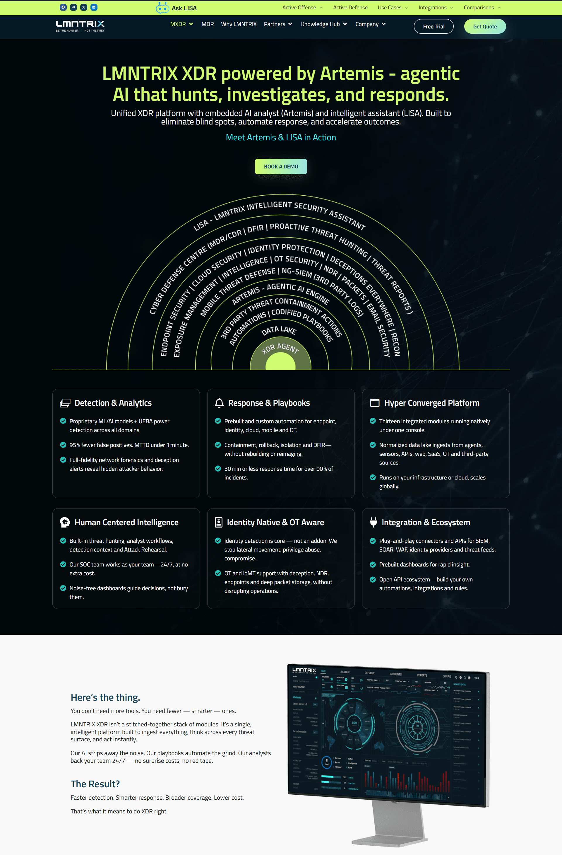 LMNTRIX, one of Pioneer leaders in the cybersecurity industry, sought to strengthen their digital presence. Specializing in cutting-edge threat management solutions, their goal was to communicate trust and authority to businesses seeking robust cyber defense.
